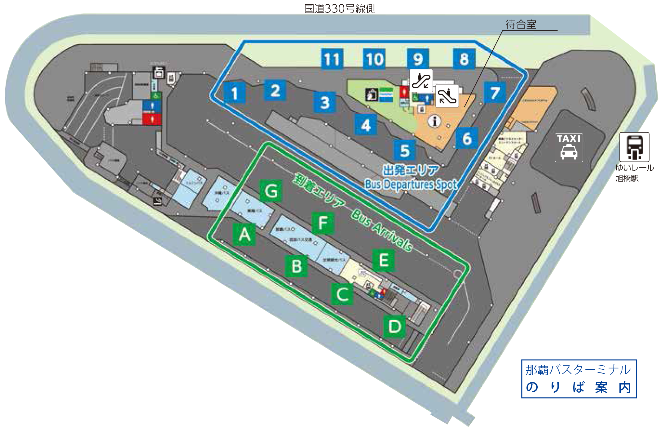 110 長田具志川(ながたぐしかわ)線 4番のりば 泊高橋バス停下車 所要時間約6分 - タクシー利用